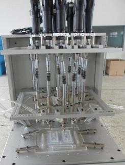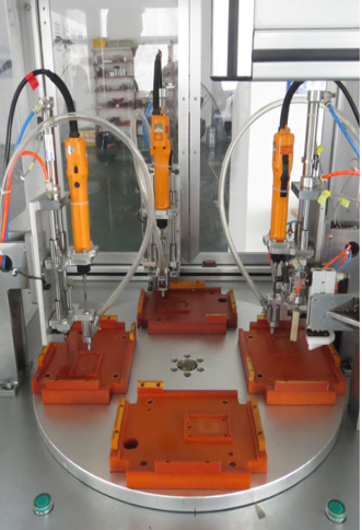 待裝產(chǎn)品上料定位檢測,螺絲自動排列上料,螺絲自動輸送到電批頭,螺絲批在機(jī)械臂的帶動下,自動連續(xù)裝配螺絲,裝配完成自動復(fù)位。