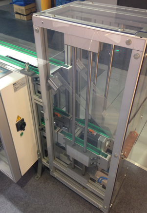 主線體為雙層皮帶流水線,兩端為氣動提升機構(gòu),和小銜接皮帶線